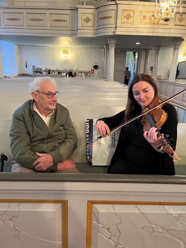 Så bad Sven-Erik att jag skulle spela lite för honom på en mycket speciell fiol som han hade tagit med sig. Inte förrän på perrongen i Alvesta förstod jag att ”gubben i Lammhult” som han sa hade byggt den var han själv.