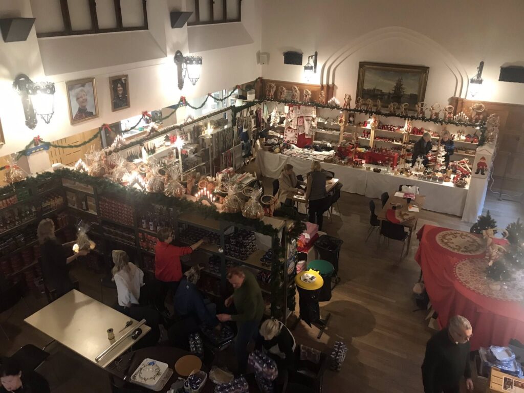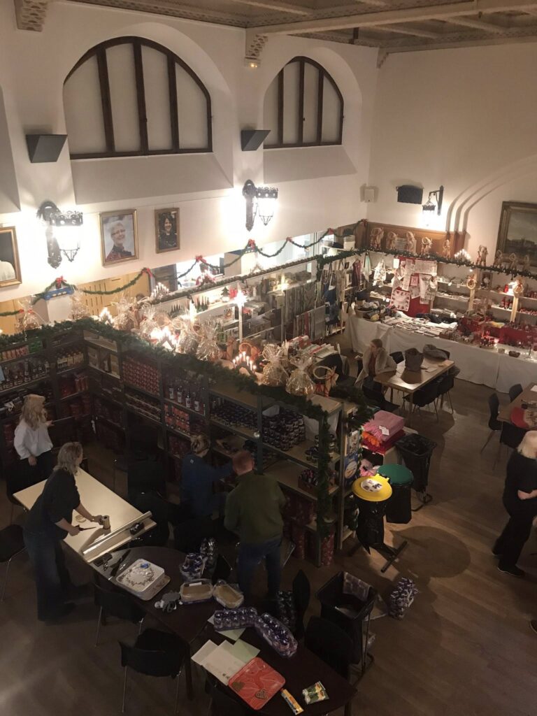 Förutom massor av svensk julmat att köpa med hem finns här massor av svensk mat i allmänhet, inklusive Delicato-bollar, Kalles kaviar, mjukost med rökt renkött, dammsugare, ostbågar och skivat lingonbröd, en butik med exklusivt svenskt hantverk (inklusive Klippan-filtar), en butik med julpynt och annat som församlingens hantverksgrupp har tillverkat på plats och hemma … På gården finns en ostbod med helt otroligt mycket Västerbottensost och Grevé och ett stort stånd där man kan köpa bland annat nygräddade våfflor och glögg. Inne i kyrkan är det café med bland annat köttbulle-och-rödbetssallad-smörgåsar och räksmörgåsar.
