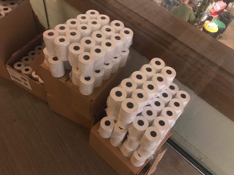 Det kommer alldeles säkert att gå åt massor av toalettpapper under de tre dagarna, men det här är rullarna med kvittopapper!