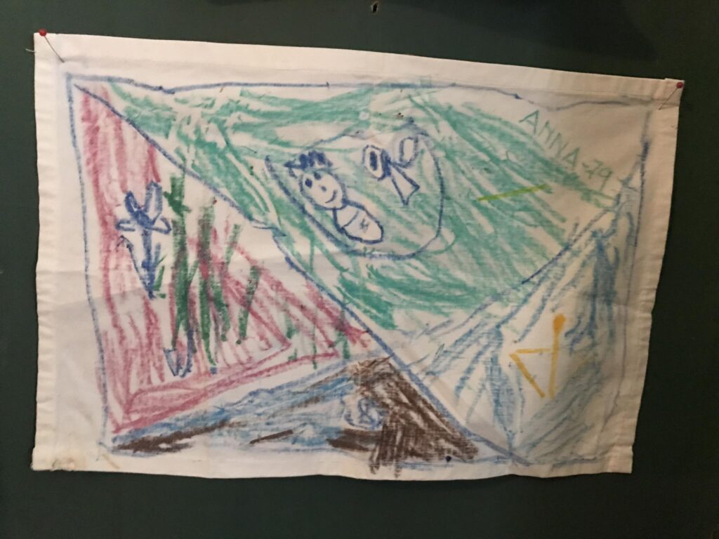 Min mamma har just satt upp en bonad (vi kallar den välvilligt så) från det år när jag skulle fylla fyra. Om man är riktigt snäll kan man se det nyfödda Jesusbarnet i den övre delen, eller hur?