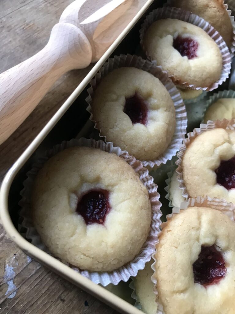 Man kan göra dem med en vanlig 1-2-3-deg, den kan också kallas till exempel mörkakor, eller med en hallongrottedeg som kan innehålla marsanpulver. Jag glömmer inte när en upprörd läsare ringde och ville reklamera en av Kyrkkaffe-böckerna därför att den innehöll ett hallongrotterecept utan marsanpulvret!