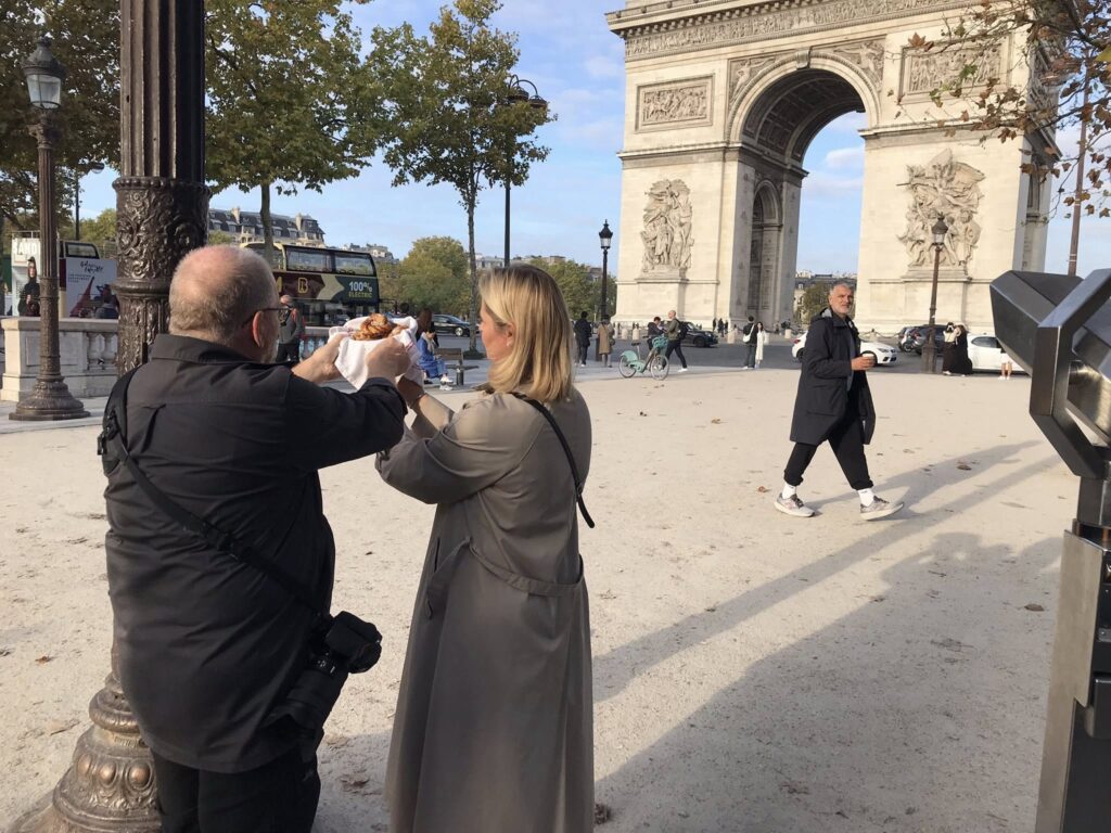 Sedan gick Magnus och Maria och jag vidare till Triumfbågen för att förverkliga en lite knasig bildidé: kanelbullar framför Triumfbågen! Vi hann prata ganska mycket på vägen dit och tillbaka, och nu måste jag bara försöka komma ihåg alla de viktigaste och roligaste detaljerna eftersom jag inte kunde anteckna något.