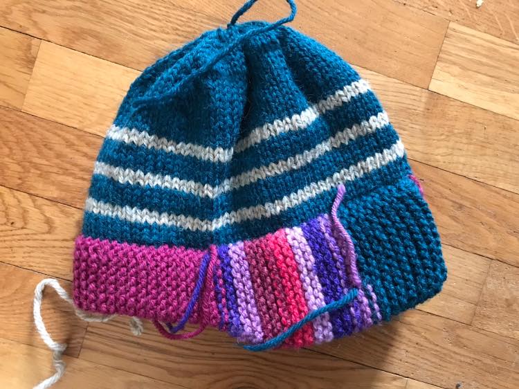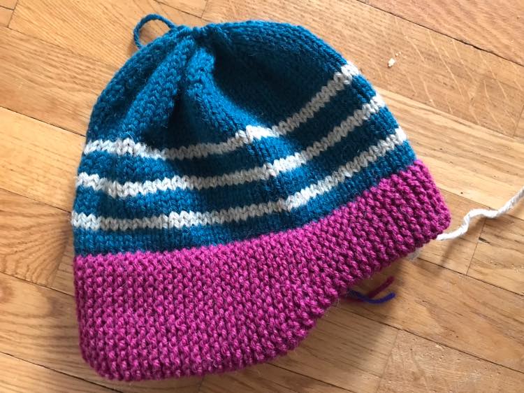 De senaste veckorna har jag stickat flera mössor med reflexgarn i. När det började säljas (var det för fem—sex år sedan? Kanske mer?) tyckte jag att det var lite väl vasst i reflextrådarna, och flera nystan har blivit liggande. Men såhär, med mjukare garn i nacken och pannan och runt öronen och så några ränder en bit upp där många har håret mellan sig och mössan, har det större chans att fungera? Vad tror ni? ❄️🧶