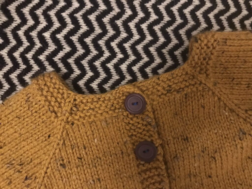 Drygt tre och ett halvt år efter att jag började blev den klar! En tröja till en väninna krävde mer än ett 400-gramsnystan, men inte så mycket mer, så av resten av det andra nystanet tänkte jag att jag kunde sticka en kofta till en nioåring. Första ärmen blev för lång, ett fäste på en…